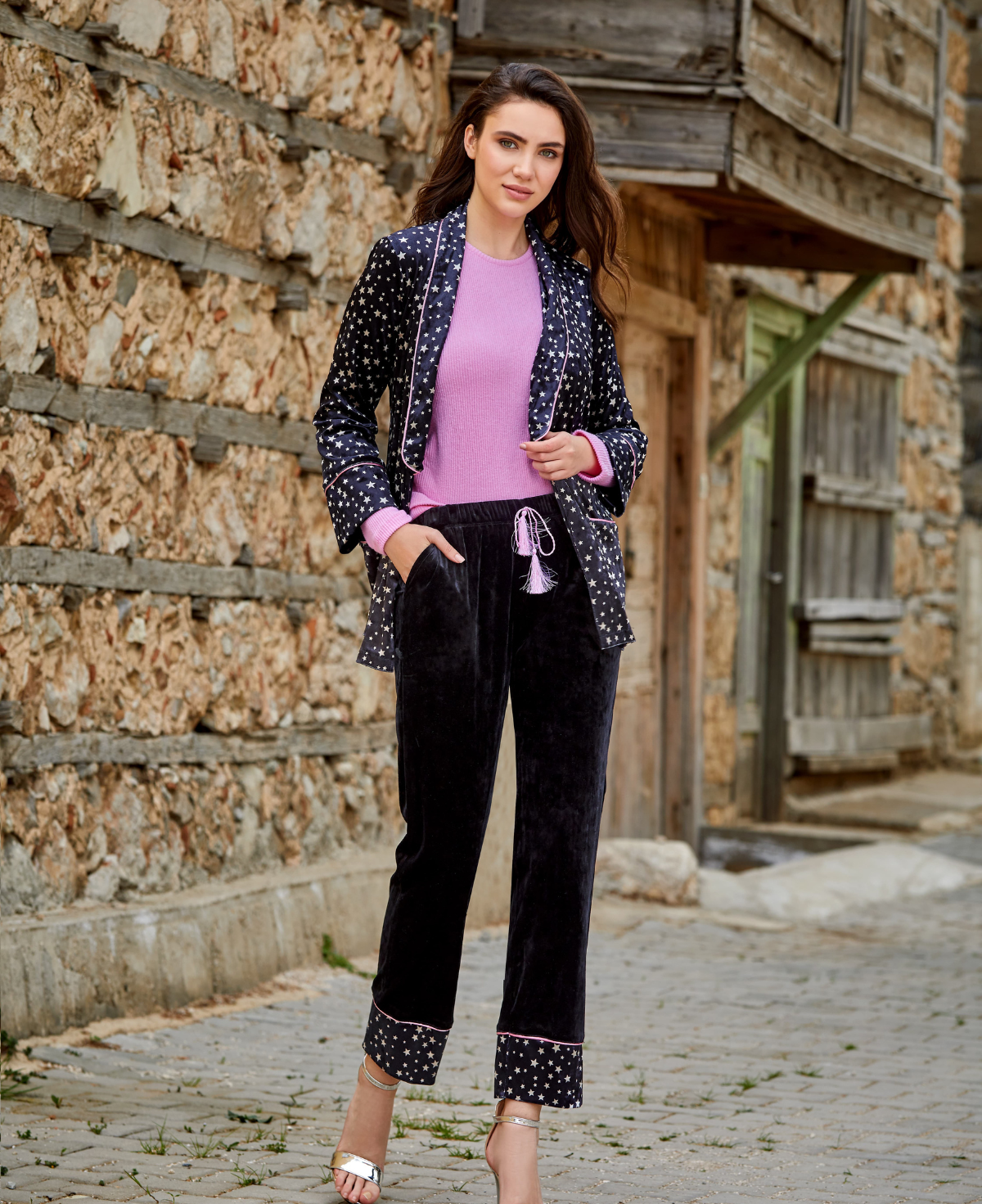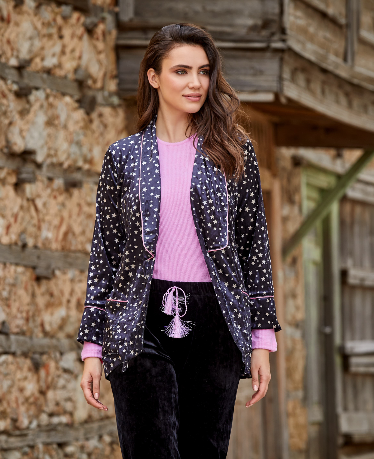 Biyeli Cepli Yıldız Kadife 3'lü Takım