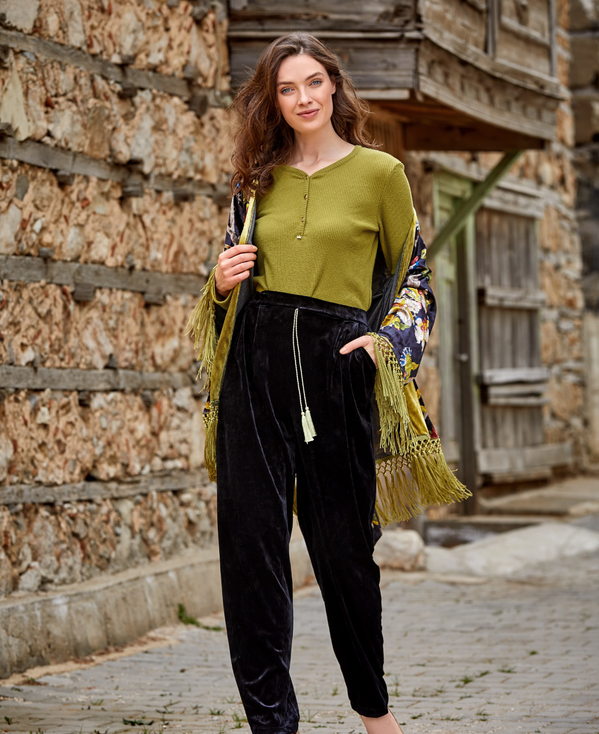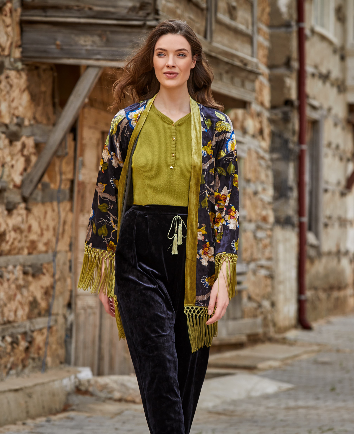 Püskül Detaylı Kadife 3'lü Takım